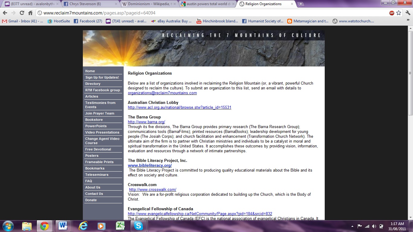 Further evidence of the ACL’s dominionist agenda is found in the backgrounds of its personnel, the organisations which support the group, the literature they quote and recommend and the conferences they attend – in short, the company they keep. It takes a bit of detective work, but scratch the surface of the ACL and you find links (direct and indirect, current and historical) to numerous bastions of dominionist theology.