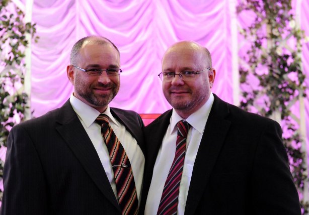 If only …. Michael Barnett and his partner, Gregory Storer pictured at Adam Hill’s in Gordon Street Tonight mass gay wedding. Here are two successful, professional, law-abiding, upright citizens who happen to be in love but, because of politicians like Wayne Swan, are denied the right to marry.