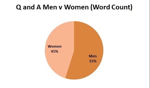 Curiously, as this was one of the rare Q&A’s where the women (Catherine Deveny, Concetta Fierravanti-Wells and Anna Krien) outnumbered the men, the male guests (Peter Jensen and Chris Evans) still managed to dominate the conversation 55 per cent to 45 per cent.