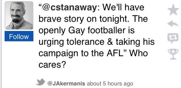 “I’ve gotta say that Peter Jensen’s words on Q&A Monday night were very cutting, I was yelling at the TV and was more than impressed to have Catherine in her quiet, direct way, taking him to task. It’s so disheartening to listen to someone like Jensen say he wants to talk about the facts then make an outrageous suggestion that gay people have a shortened life span. And I mean disheartening. It’s been one hell of a week. Religious type people make false claims and then reinforce their own mistakes as if they’re right. The impact on my well-being is quite astounding. I can certainly see how it could have a huge negative impact on a young gay person who may not have built up a life-time of resilience.”