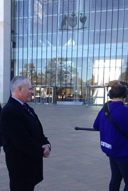 In the forecourt of the High Court building Ron was immediately cornered by media. As he was interviewed by AAP (see article at The Guardian), Peter James, CEO of Scripture Union Queensland, looked on.